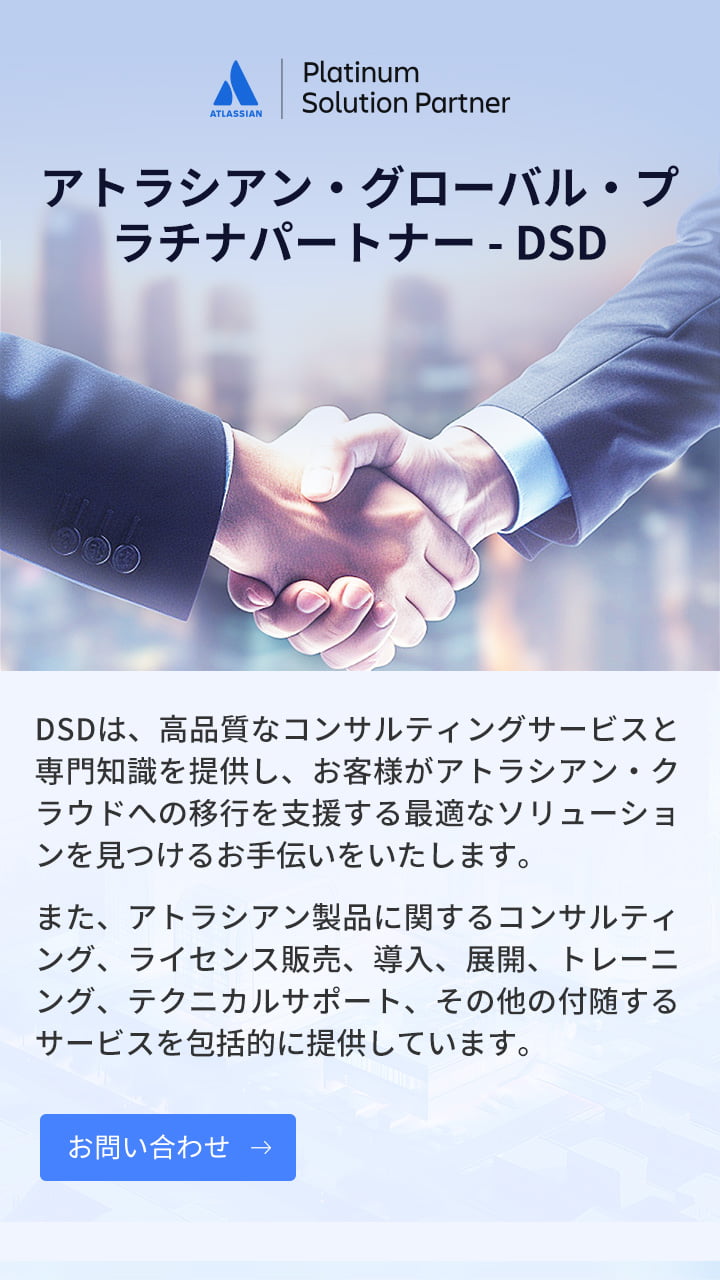 アトラシアン認定グローバル・プラチナパートナーとして、DSDは高品質なコンサルティングサービスと専門知識を提供し、アトラシアン・クラウドへの移行を支援する最適なソリューションを見つけるお手伝いをします。